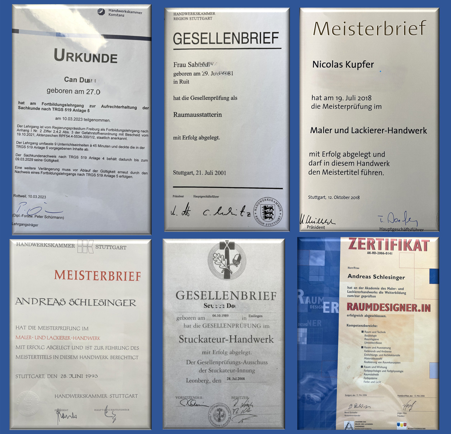Wir wollen nicht nur gut sein, sondern besser werden. Deshalb fördern wir gezielte Fortbildungen. Ein Auszug unserer Zertifikate: